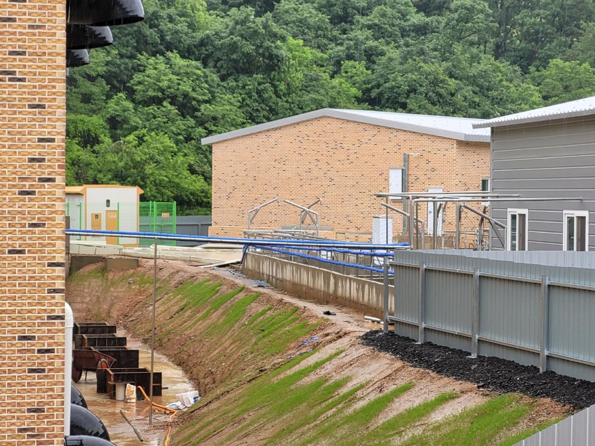작업내역 : 에어포그 설치중 / 1층 안개분무 설치 및 시운전 / 소독조 설치완료