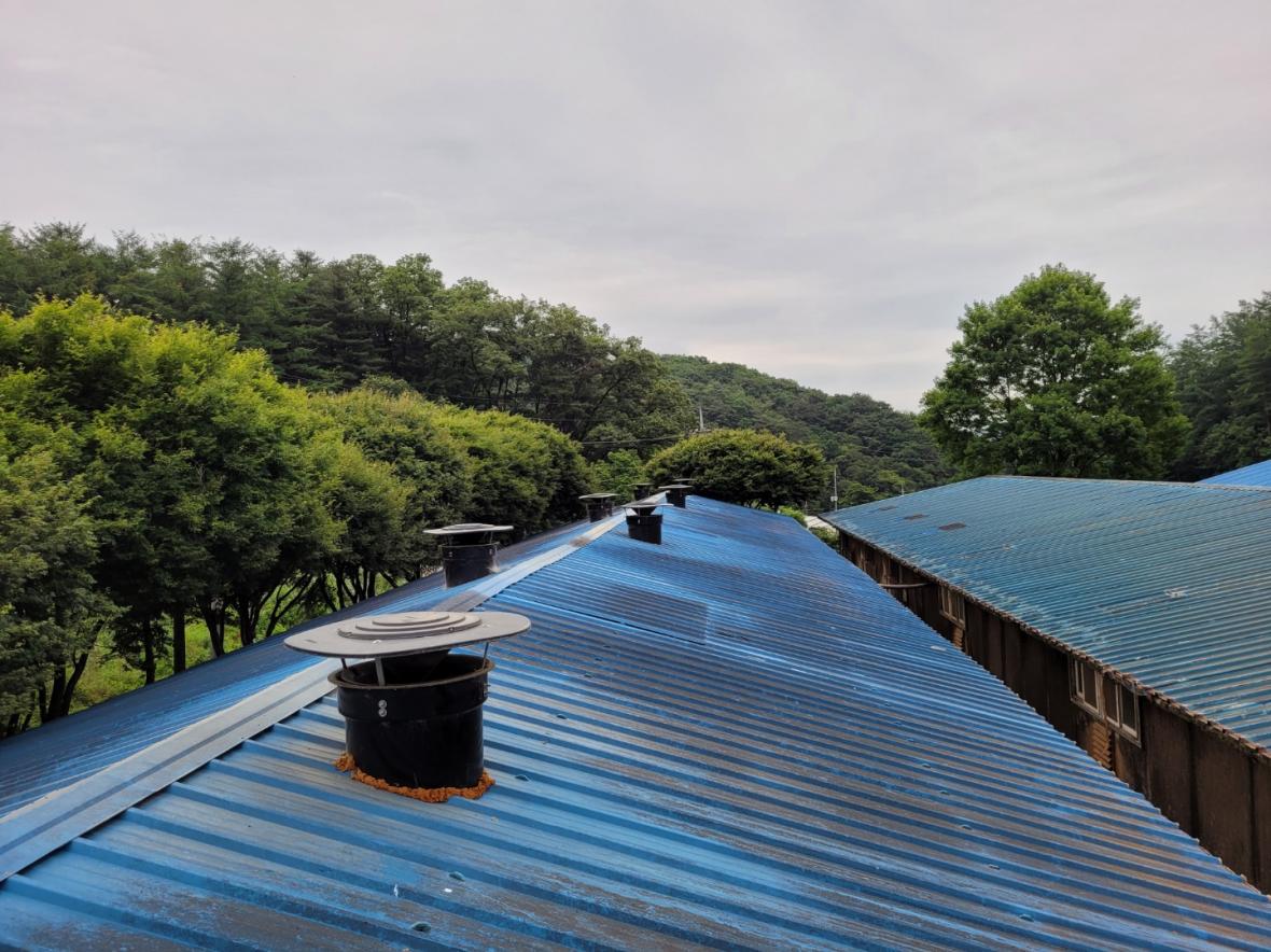 작업내역 : 환기 굴뚝휀 설치중 / 벽체 타공후 입기덕트 설치중