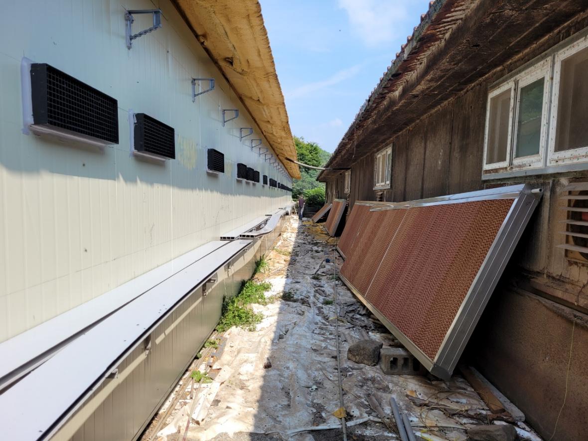 작업내역 : 쿨링패드 설치완료 / PVC 배관자재 이설