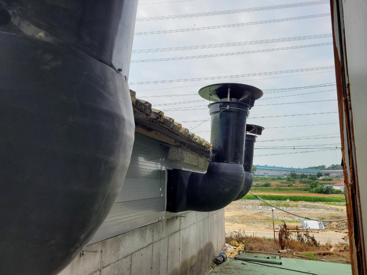 작업내역 : 벽면휀 상부연결대 스텐와이어 고정 / 스텐 방화도어 설치완료