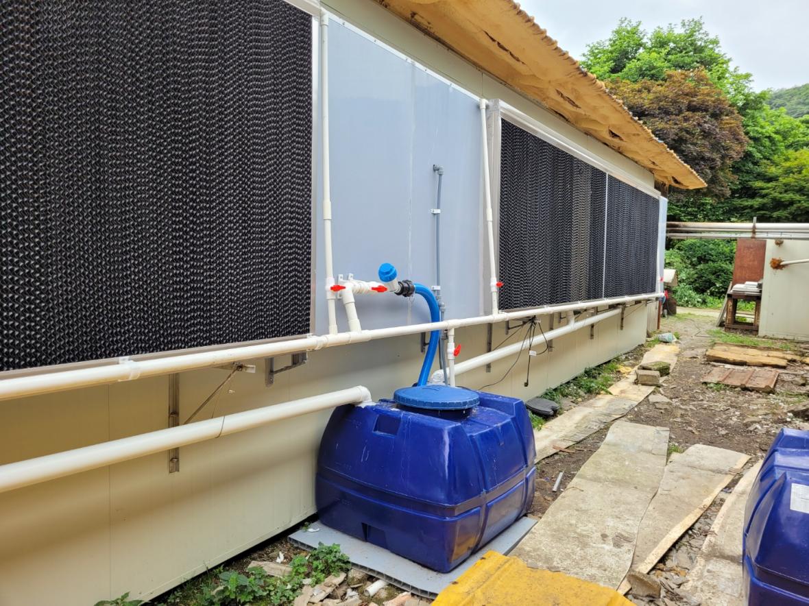 작업내역 : 쿨링패드 급수라인 연결 및 스텐와이어 고정작업 / 쿨링패드 시운전