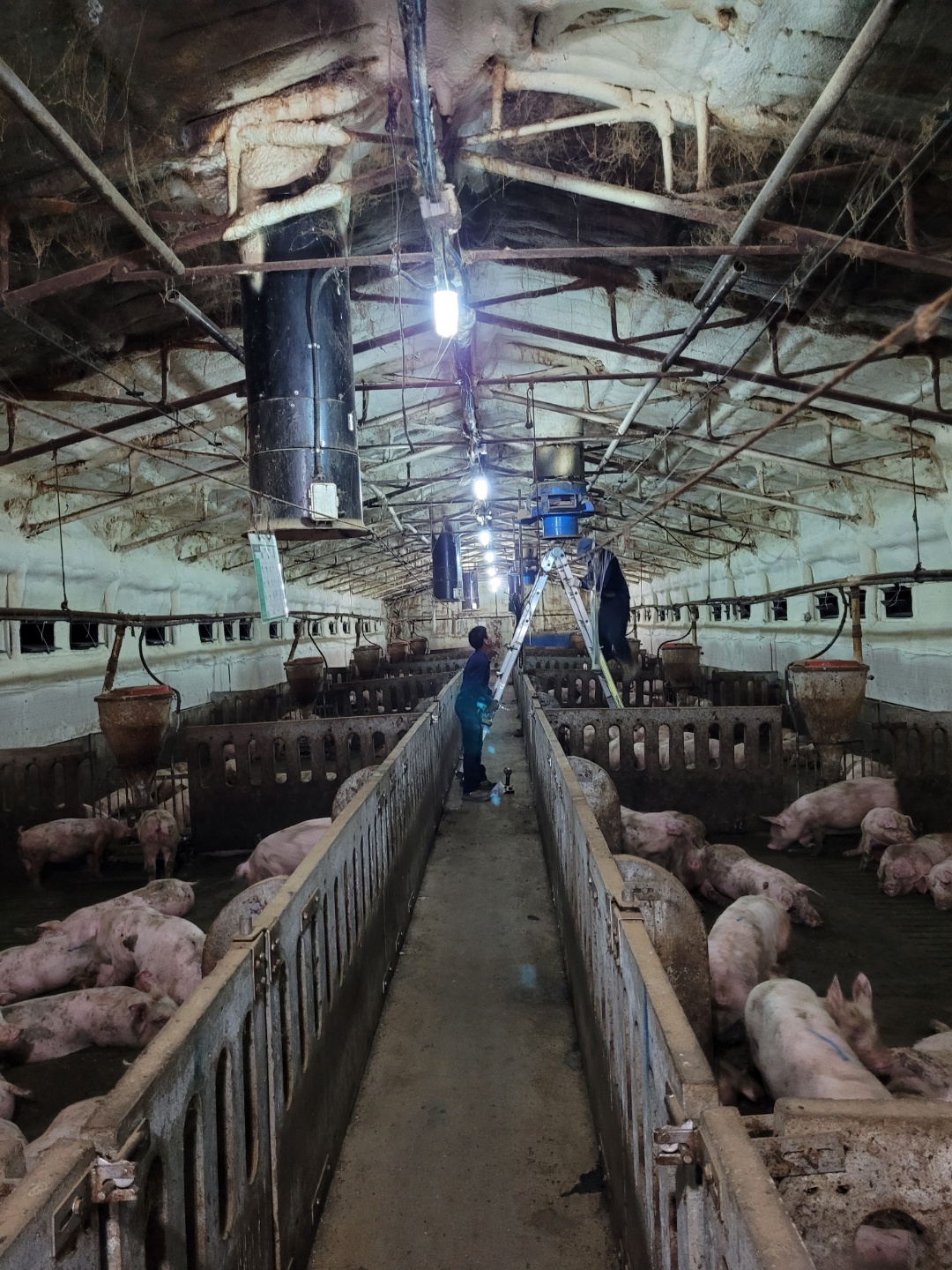 작업내역 : 쿨링패드 시운전 완료 / 리믹스 휀 자돈사 설치완료 / 윈치기계 각관으로 고정